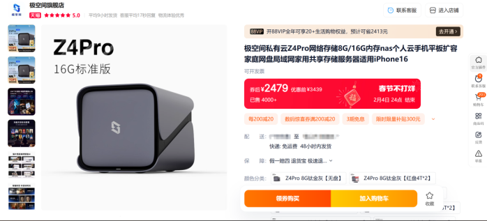 极空间私有云春节不打烊,从1月23日起至2月4日,在天猫平台特献重磅优惠礼遇,与广大消费者共贺新年!依托科技创新的坚实基础,极空间精准满足了消费者对高性价比私有云产品的迫切需求,引领大众深切感受了新一代智能家居技术的独特风采与非凡魅力。
